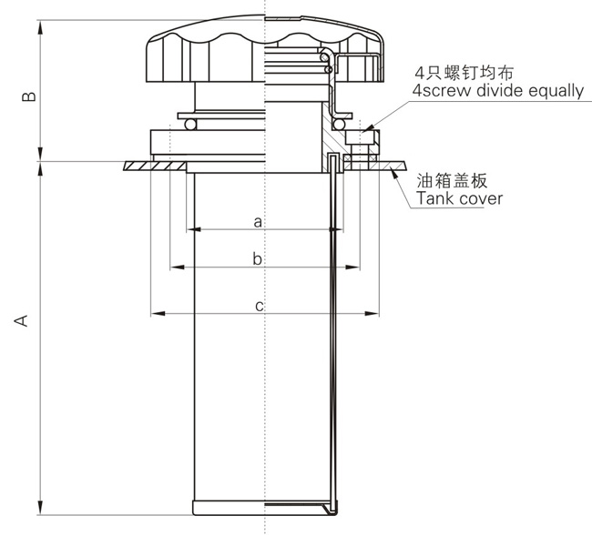 当液压系统工作时油箱内油面时而上升或下降,上升时由里向外排出空气,下降时由外向里吸入空气。为净化油箱内油液,在油箱盖板上垂直安装空气滤清器,就可以过滤吸入的空气;同时空气滤清器又是注油口,注入的新工作油液,须经过滤再进油箱,从而滤除了油液内的脏物颗粒。