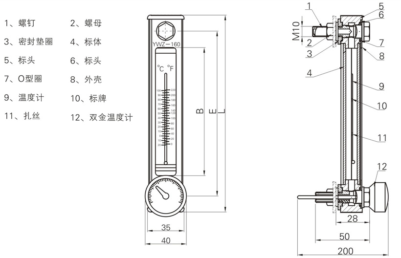 CYW-76~500系列传感式液位液温计是我厂在批量生产YWZ-76~500系列的基础上,参考国外先进技术资料开发的一种新产品。它是利用双金属片热胀冷缩灵敏度相当高的特点来测量油液的温度。这样仪表具有准确度,读数容易,坚固耐震等特点,可广泛应用于各种油箱、润滑装置、冷却和齿轮传动箱中的液位液温测量。